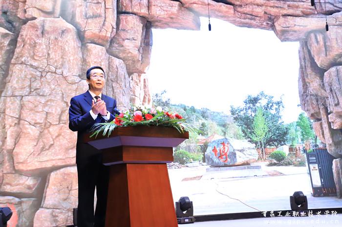 曹爱明校长致辞,对各位参会领导、嘉宾和校友的到来表示热烈的欢迎,对给予学校的关注关心和支持帮助的各界人士表示诚挚的感谢。曹爱明校长讲到,学校从1979年天水地质学校创校到甘肃工业职业技术学院先后五次改名,沧桑巨变40年,一路劈荆斩刺、开拓创新,秉承“因核而生、依核而长、伴核而兴”的传统,坚持“立德树人”初心,工作服、地质包、罗盘、地质锤,六间简陋的教室,翻荒山穿草地,扎根陇原,依托行业优势,不断提高教学水平、积累教育资源,为国防科技工业和地方经济社会发展作出了巨大的贡献,这沉甸甸的硕果是工院每位默默耕耘老师的辛勤奋斗换来的。曹爱明校长说:“今天,我们齐聚一堂共庆学校40岁生日,共划学校未来发展之路,共享学校改革发展成果,让我们凝心聚力,不忘初心,继往开来,用持续不断的奋斗和拼搏为过往点睛,给未来画像,在实现中华民族伟大复兴的征程中带着“严细、忠毅”和勇气上路去追逐更加美好的明天!再次成就学校美好的传奇。”