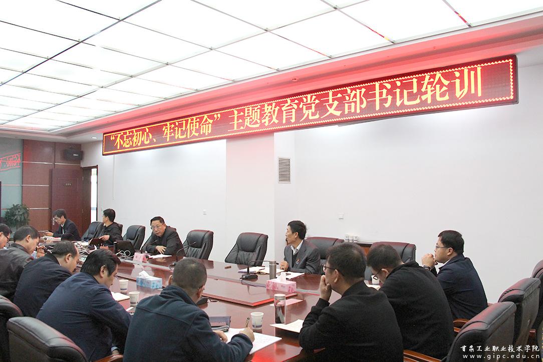 10月8日下午,甘肃工业职业技术学院在新图书馆四楼会议室,开展“不忘初心、牢记使命”主题教育党支部书记轮训。校党委书记杨声出席,全体党总支书记、党支部书记参加。校党委副书记郭建忠主持。