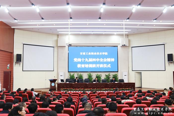开班仪式上,潘文生同志宣读了中共甘肃工业职业技术学院委员会《关于举办党的十九届四中全会精神教育培训工作的通知》,通知要求:全体参训学员要充分认识此次教育培训的重大意义,切实提高思想认识,高度重视本次培训工作;加强组织领导,确保本次教育培训工作各项要求和任务落到实处;党员领导干部要起示范带头作用,切实做到学用结合、知行合一,以实际行动推动党的十九届四中全会精神落地见效。