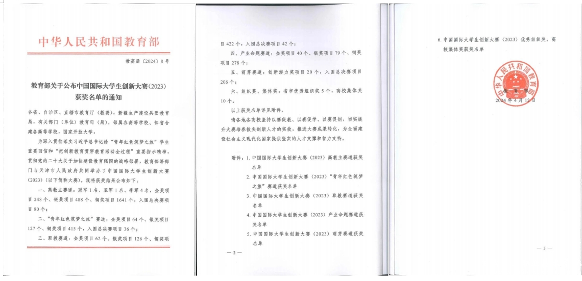 近日,教育部公布了中国国际大学生创新大赛(2023)获奖名单,我校参赛项目《“甘小胖”——扎根富农产业链》荣获本届国赛“职教赛道”铜奖佳绩,这是我校继第七届“互联网+”国际大学生创新创业大赛国赛夺冠后再次荣获国赛奖项。