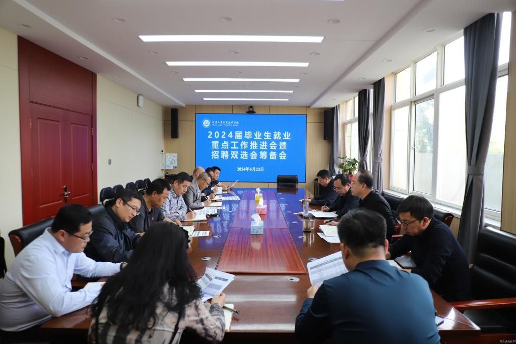 4月22日下午,学校在行政楼2楼会议室召开2024届毕业生就业重点工作推进会暨招聘双选会筹备会议。党委副书记、院长安建平出席会议,各二级学院负责人、分管就业工作副职及招生就业处人员参加会议。会议由副院长周晓明主持。