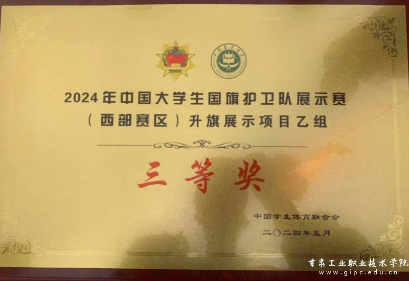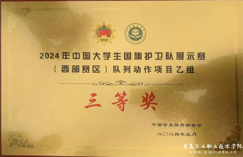 5月16日-19日,2024年中国大学生国旗护卫队展示赛(西部赛区)比赛在甘肃农业大学举行,来自内蒙古自治区、重庆市、四川省、西藏自治区、陕西省、甘肃省、青海省、宁夏回族自治区、新疆维吾尔自治区等地高校国旗护卫队齐聚一堂,共同见证了这一青春盛事。我校国旗护卫队以出色的表现,荣获队列动作展示三等奖、升旗展示三等奖,并凭借队员们的团结精神和良好的综合素质,荣获西部赛区组委会颁发的“体育道德风尚奖”。