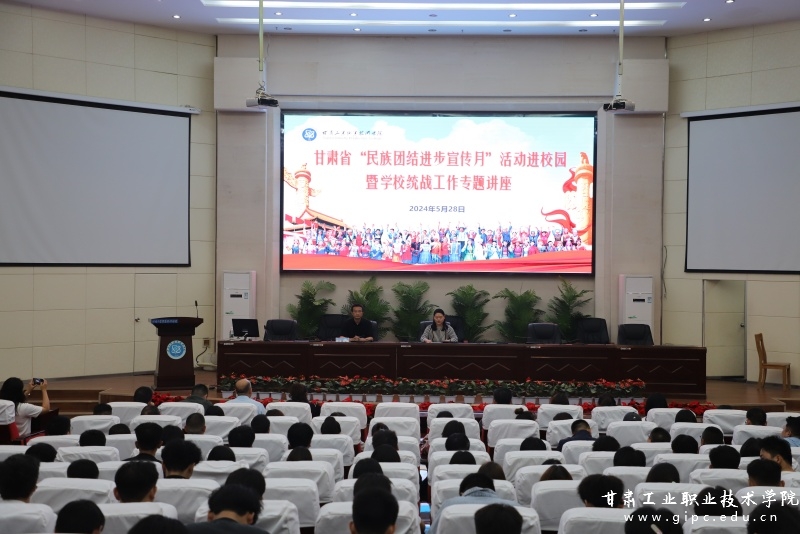 5月是全省教育系统第 21 个民族团结进步宣传月,为了全面贯彻党的二十大精神,持续深入学习宣传贯彻习近平总书记关于加强和改进民族工作的重要思想,5月28日下午,学校在图书馆5楼智敏报告厅举办甘肃省“民族团结进步宣传月”活动进校暨统战工作专题讲座,邀请天水市委统战部民族宗教科科长安腾飞作题为《石榴花开心相连 青春筑梦新时代》专题讲座。校党委宣传(统战)部部长黄晓慧出席,党委统战部、马克思主义学院思政教师、学工处、二级学院副书记、辅导员、班主任及学生代表共300人参加。