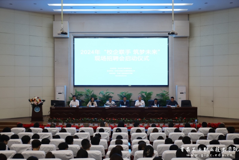为认真贯彻落实国家、省市稳预期稳增长稳就业决策部署和“两个毫不动摇”方针,进一步做好毕业生就业工作,搭建用人单位与毕业生沟通交流的平台,9月24日下午,由天水市工商联主办、甘肃天美通企业管理有限公司协办、甘肃工业职业技术学院承办的“校企联手 筑梦未来”活动启动仪式暨现场招聘会在图书馆五楼报告厅举办。天水市政府副秘书长王勇,天水市委统战部副部长、市工商联党组书记韩广文,市工商联党组成员、副主席马斐,我校副院长周晓明出席,300余名学生参加招聘活动。