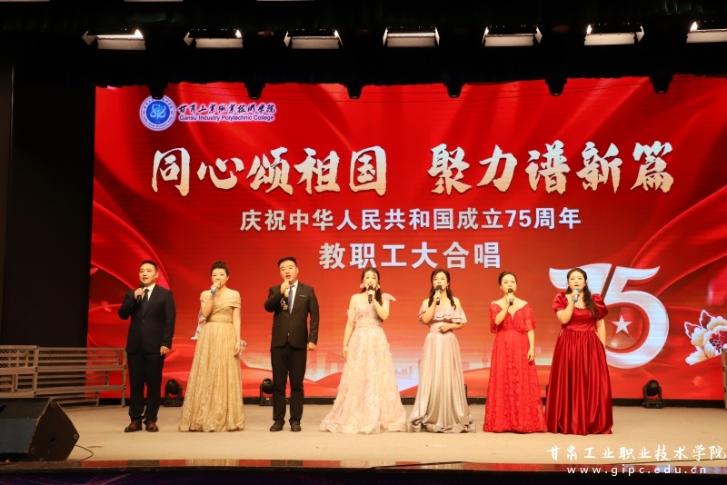 大合唱在第一分工会与地质学院分工会教师倾情献唱的《歌唱祖国》和《没有共产党就没有新中国》的歌声中拉开序幕。现场高潮迭起,气氛热烈,7支合唱队着装整齐,精神饱满,斗志昂扬。《我和我的祖国》《我们走在大路上》《走进新时代》《爱我中华》《祖国不会忘记》等一首首红色经典曲目被先后唱响。教职工或激情飞扬,热情洋溢,歌唱祖国繁荣富强;或深情款款,唱出中国人的自豪与担当;或豪情壮志,气势磅礴,唱出新时代的发展与成就。熟悉的旋律,深情的演唱,展现了新中国走过的75年光辉历程,抒发了学校教职工的爱国情怀。