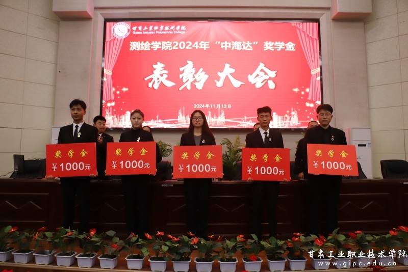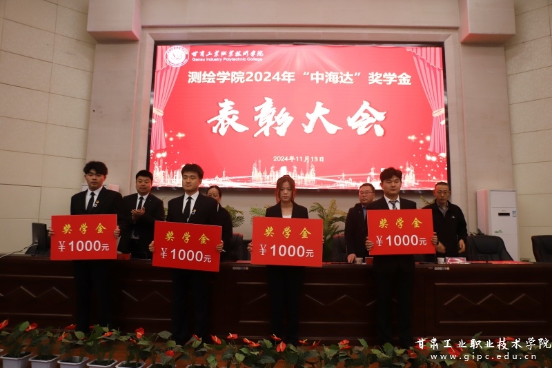 11月13日下午,测绘学院在图书馆五楼智敏报告厅举行2024年“兰州祥龙”仪器检校台捐赠仪式暨“中海达”奖学金表彰大会。校党委副书记文云、兰州祥龙地理信息科技有限公司总经理王海旺出席,测绘学院班子成员、教师代表、获奖学生及部分学生代表参加。表彰大会由测绘学院院长薛亚宏主持。