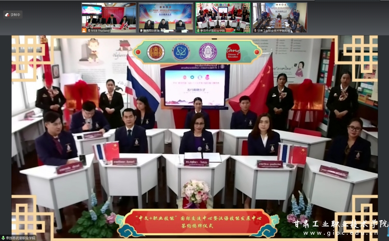 11月29日,甘肃工业职业技术学院与泰国曼谷职业教育中心、吞武里职业学院、北京唐风国际教育集团举行四方合作签约暨“中文+职业技能”国际交流中心、“汉语技能发展中心”揭牌仪式。