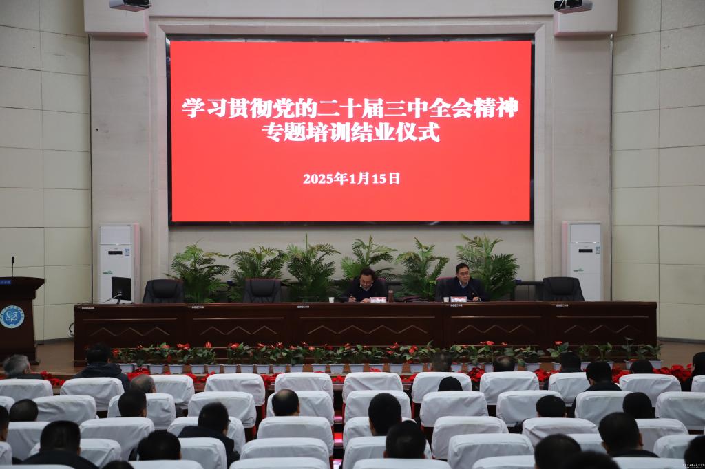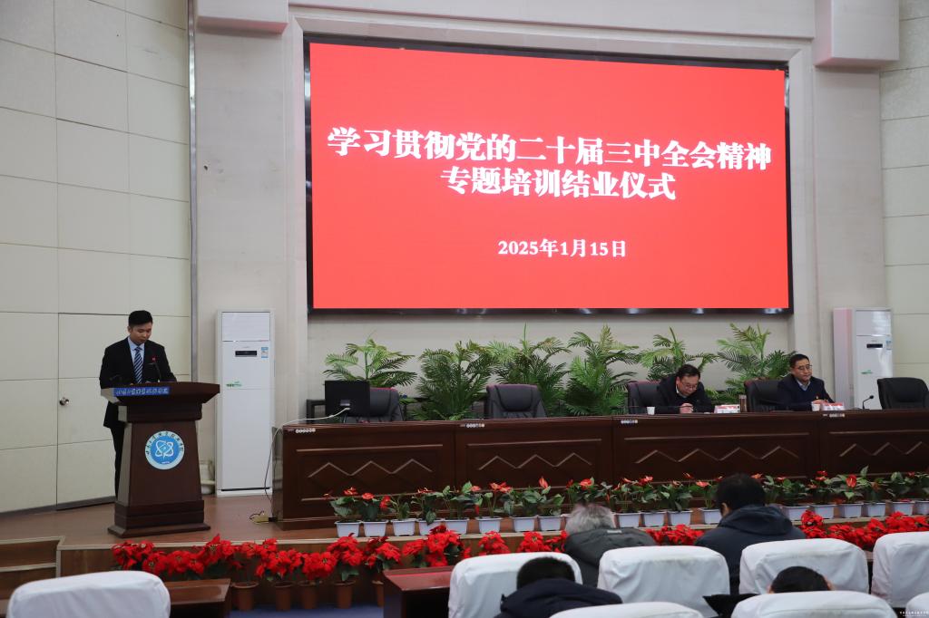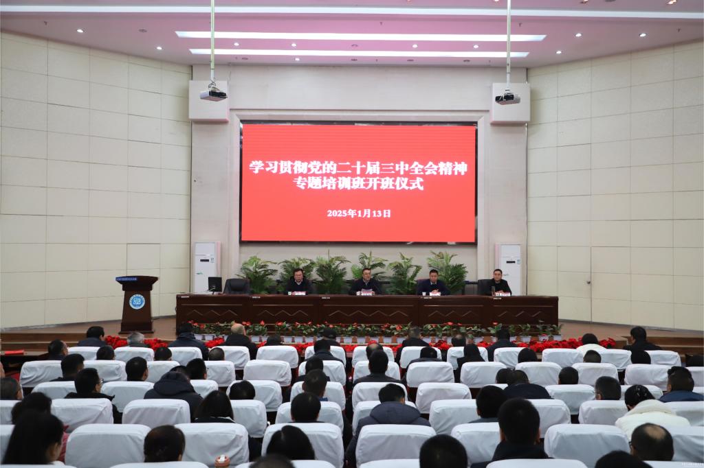 为贯彻落实党的二十届三中全会精神和全国全省教育大会精神,进一步推进学校党建工作走深走实,1月13日-15日,学校举办了处科级干部学习贯彻党的二十届三中全会精神专题培训班。党委书记坚葆林,党委副书记、院长张利军,党委副书记文云,党委委员、副院长胡森林出席培训班开班仪式,全体处科级干部参加培训。