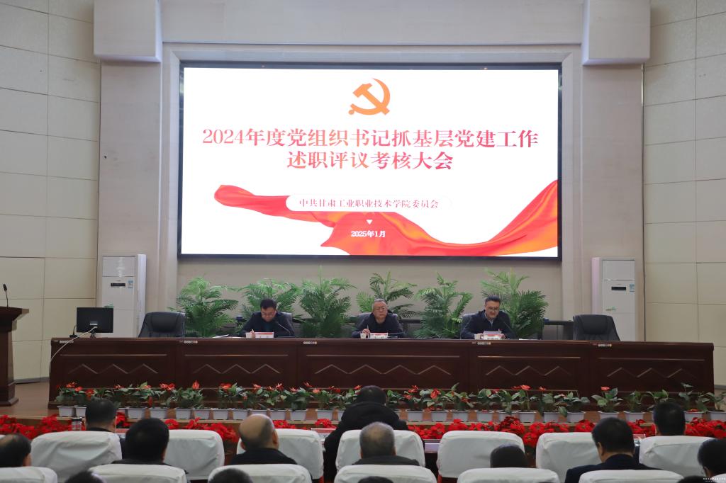 1月17日,中共甘肃工业职业技术学院委员会召开2024年度党组织书记抓基层党建工作述职评议考核大会。天水市委宣传部副部长王刚出席会议并讲话,学校党委书记坚葆林及其他在家党委领导班子成员、各党组织书记、部门党员干部参会。会议由党委副书记文云主持。