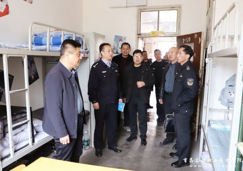 3月5日下午,由天水市麦积区教育局牵头,联合区公安局经济文化保卫大队、区市场监督管理局组成的校园安全联合检查组,在区教育局副局长冯辉带领下,对我校学生公寓、学生餐厅、实验实训室等重点区域进行全方位安全专项检查。副院长曹惠清,学工处、后勤管理处、保卫处等相关部门负责人陪同检查。
