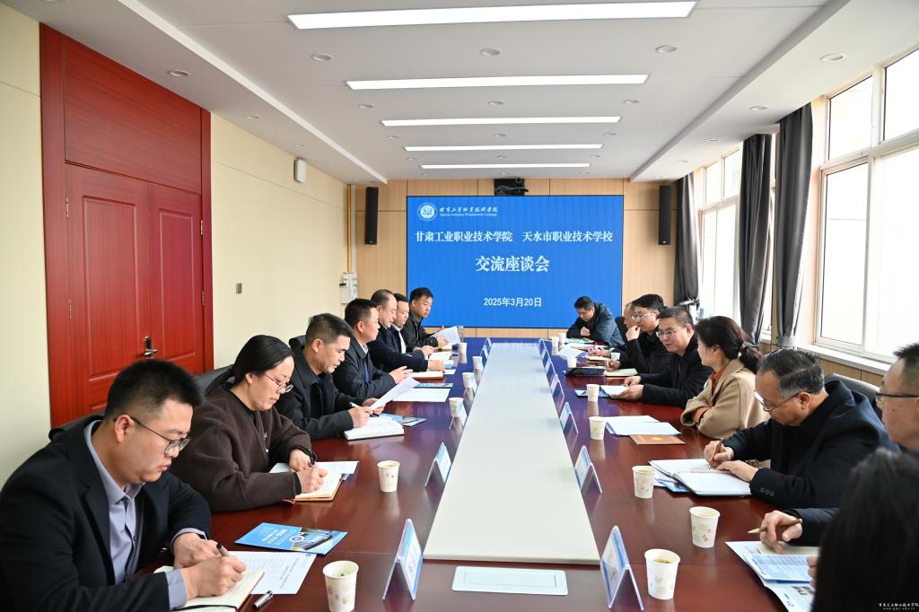 周晓明从办学规模、专业特色、产教融合等方面介绍了我校基本情况。李长虹对天水市职校的专业建设、生源结构及新增专业贯通培养情况进行了说明。双方围绕贯通专业实训课程、2025年“3+2”贯通培养协议签订和职业教育体系建设等重点工作进行了深入探讨与交流。双方一致表示,希望两校今后在中高职一体化联合办学过程中加强资源共享,在技能大赛指导、课程共建、联合教研等领域深化协作,共同制定人才培养方案、打造一体化课程体系,不断提升培养质量,持续拓展合作深度,共绘职业教育高质量发展新图景。