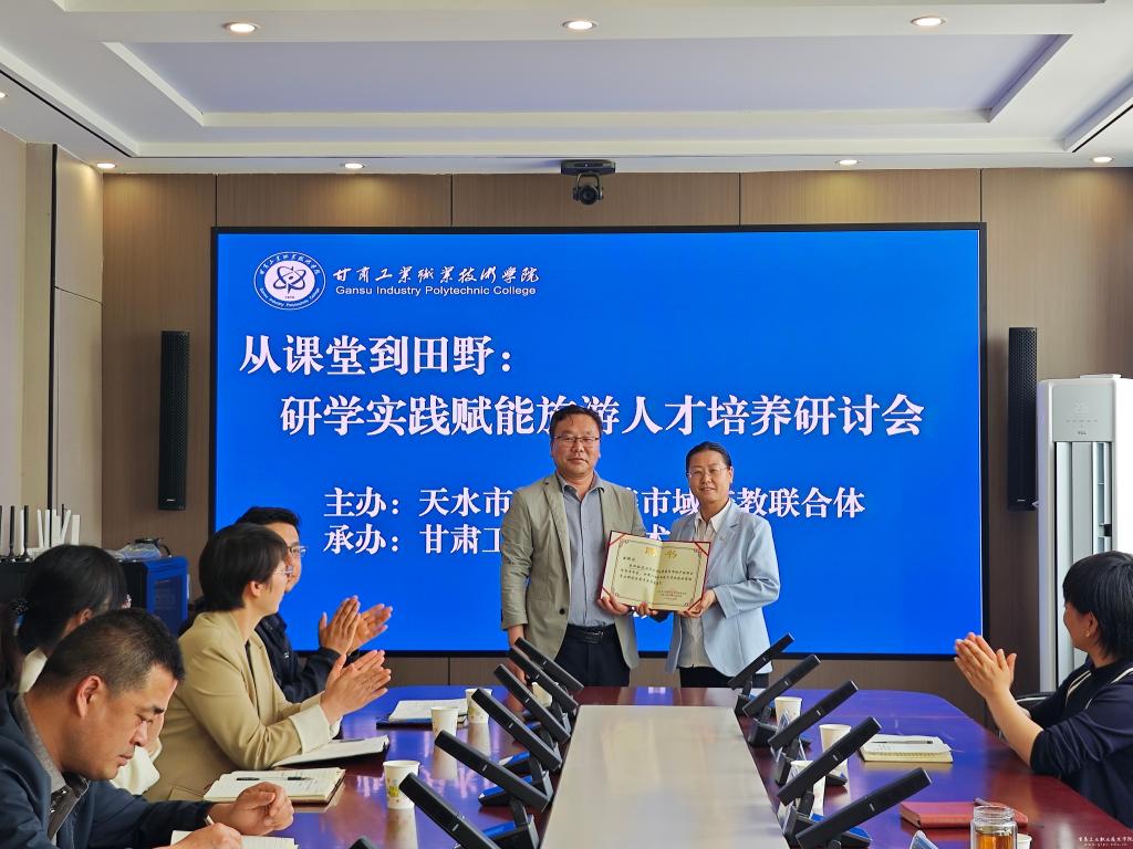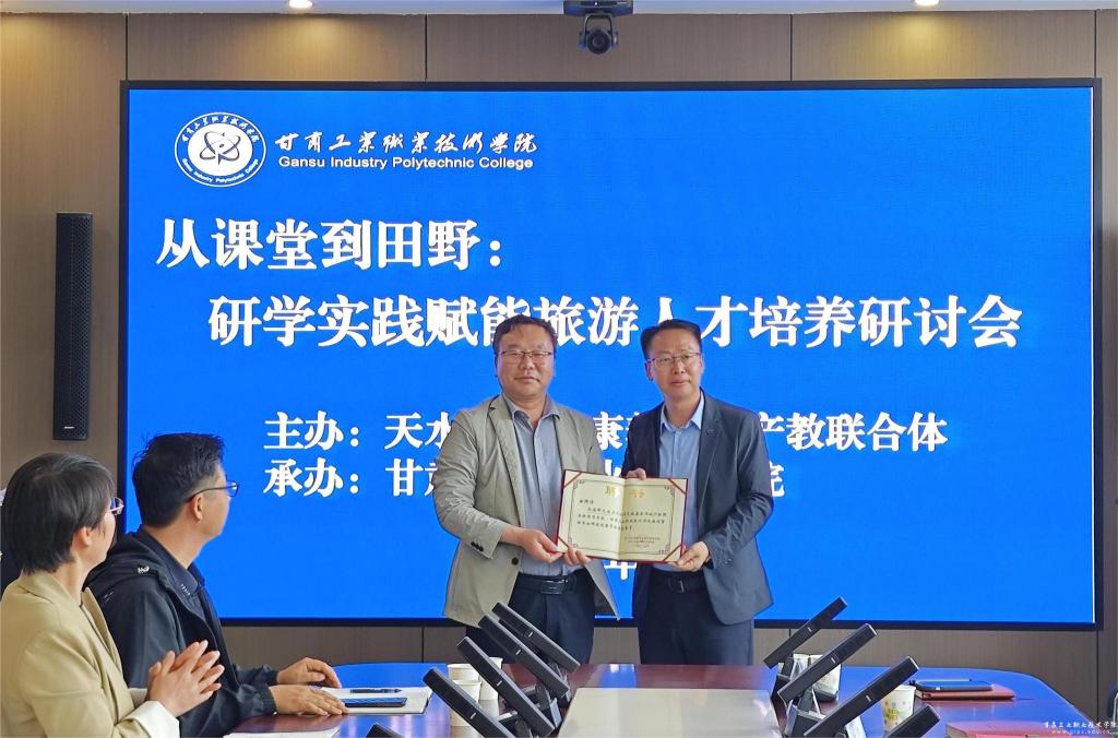 为深化职业教育改革,推进研学旅行人才培养体系建设,4月29日,由天水市文旅康养市域产教联合体主办,我校承办的“从课堂到田野:研学实践赋能旅游人才培养”专题研讨会成功举办。党委副书记文云出席,旅游学院班子成员、历任书记、院长、各专业带头人、青年教师代表参加。