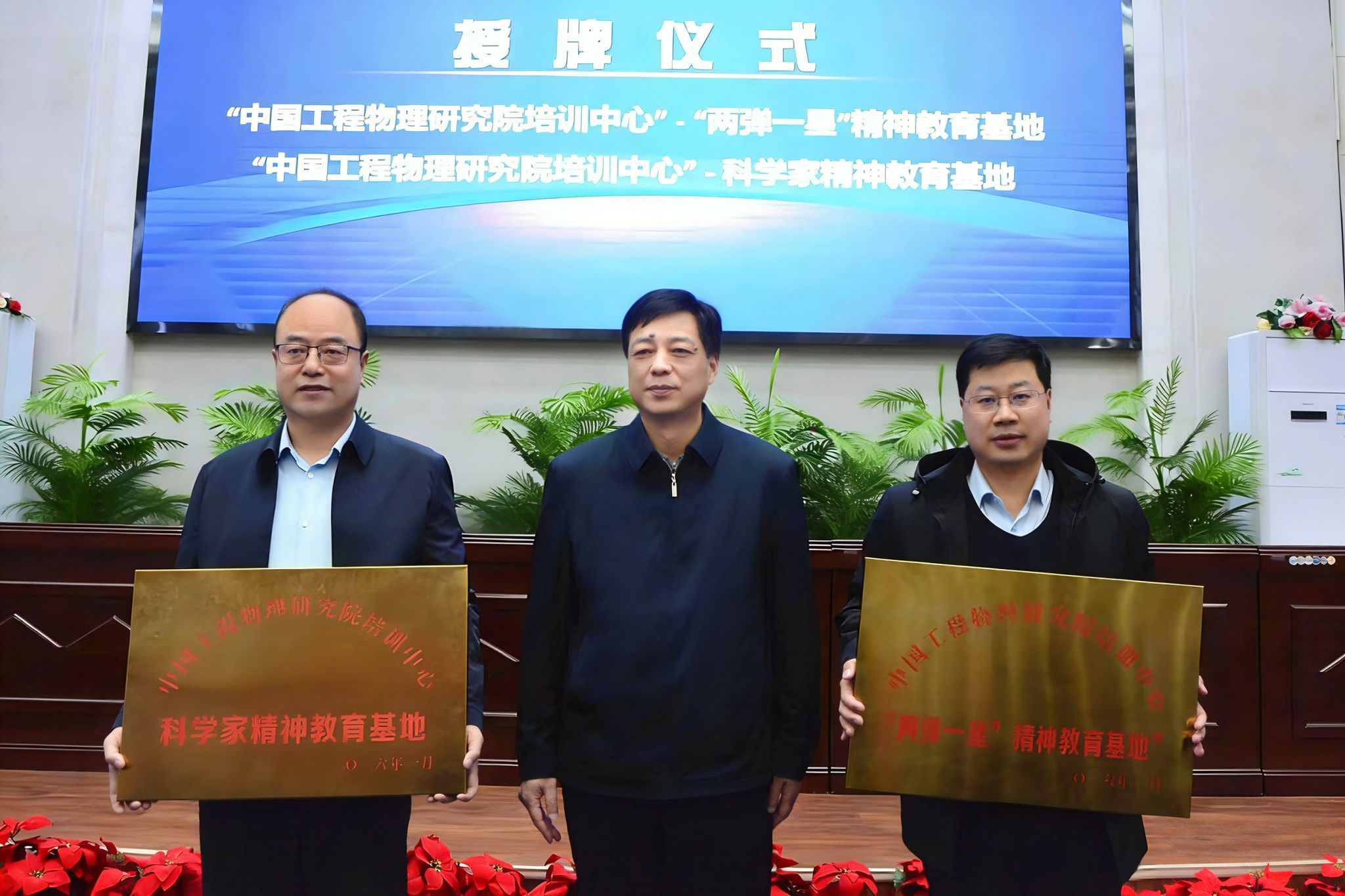随后,一系列重要平台揭牌落地。中国工程物理研究院培训中心向学校授予“‘两弹一星’精神教育基地”和“科学家精神教育基地”牌匾;先进技术成果西部(绵阳)转化中心授予“电磁防护技术实验室”牌匾;由学校与研究所共建的“核地质勘探及防护技术重点实验室(筹)”也正式揭牌成立,为后续科研攻关与人才培养构筑了高起点平台。