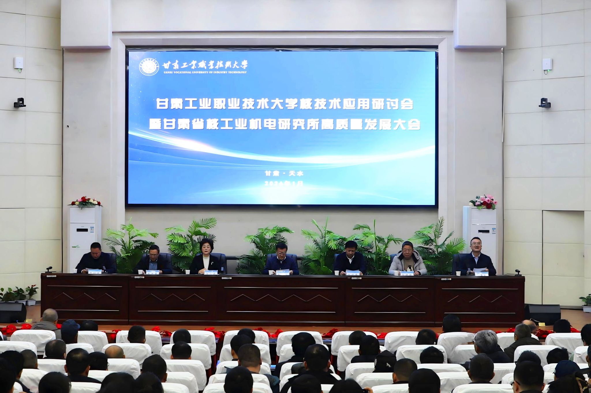 1月7日,学校在麦积校区图书馆举办核技术应用研讨会暨甘肃省核工业机电研究所高质量发展大会。中国科学院院士,中国科学院近代物理研究所研究员、博士生导师,兰州重离子加速器国家实验室副主任赵红卫;天水市委副书记杨晓锋,副市长汪小娟、甘肃工业职业技术大学党委书记坚葆林出席会议。本次大会汇聚了国内高校、科研院所及企业的80余位代表,及学校师生共计300余人,围绕核技术应用创新、产教融合与研究所发展展开深入交流与战略谋划。