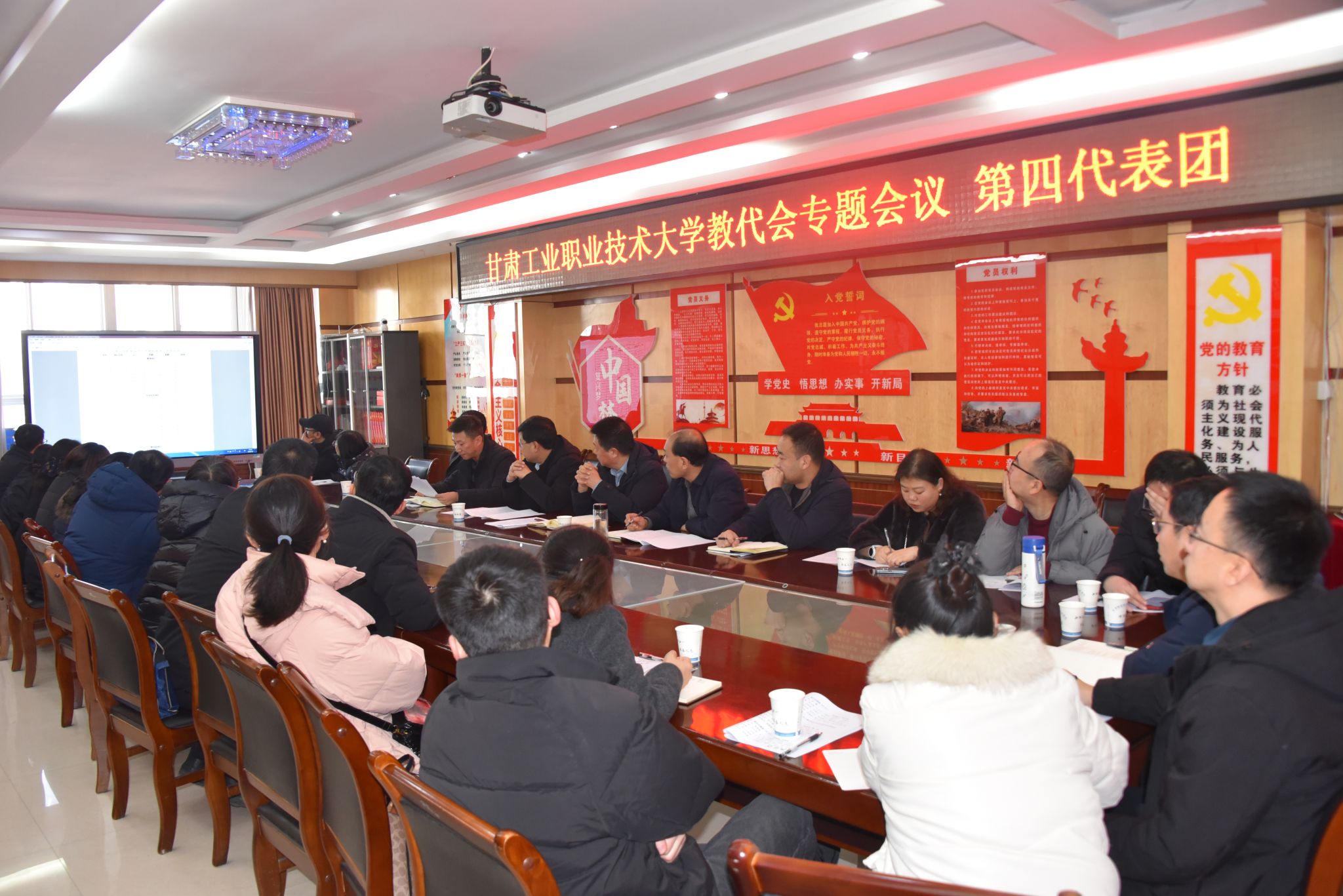 1月8日,学校召开教代会专题会议,审议《甘肃工业职业技术大学校内绩效工资分配方案(试行)》。在校领导班子成员出席,全体教代会代表参加。会议由党委副书记刘乃君主持。