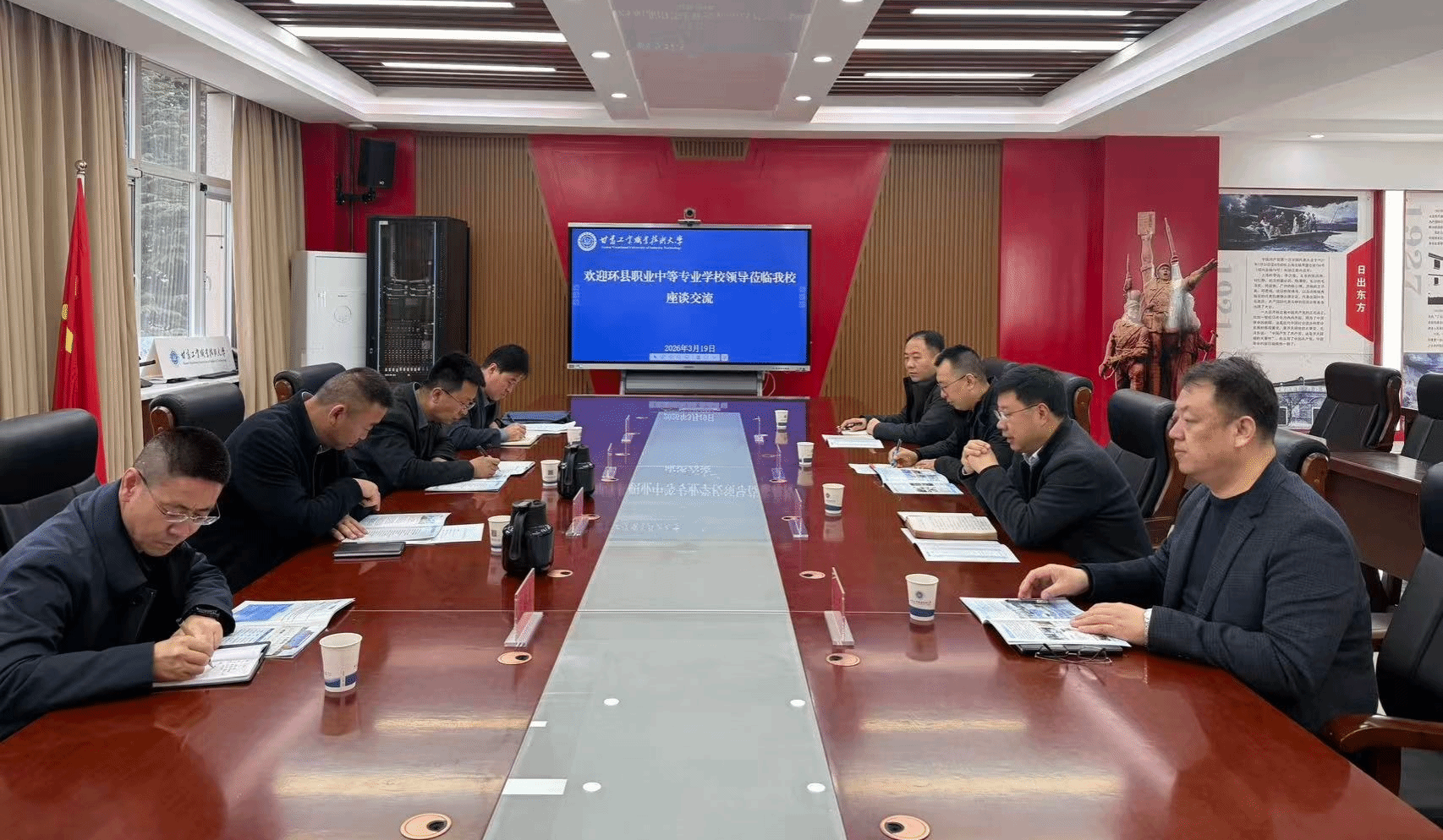 3月19日,环县职业中等专业学校校长张汉伟一行来我校交流座谈。学校副校长曹惠清出席座谈会。招就处、相关二级学院负责人参加。