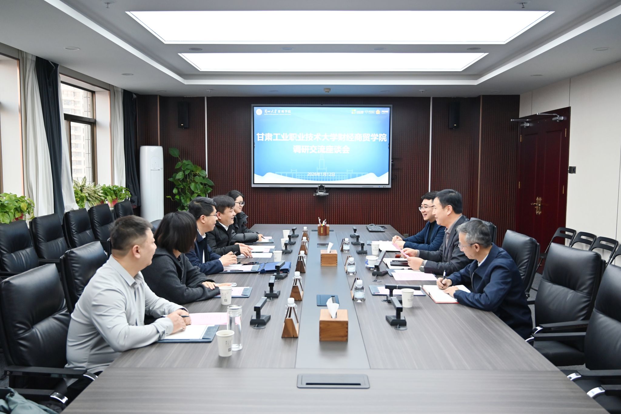 1月11日至12日,财经商贸学院领导班子及教师代表一行前往兰州大学管理学院、经济学院考察学习。
