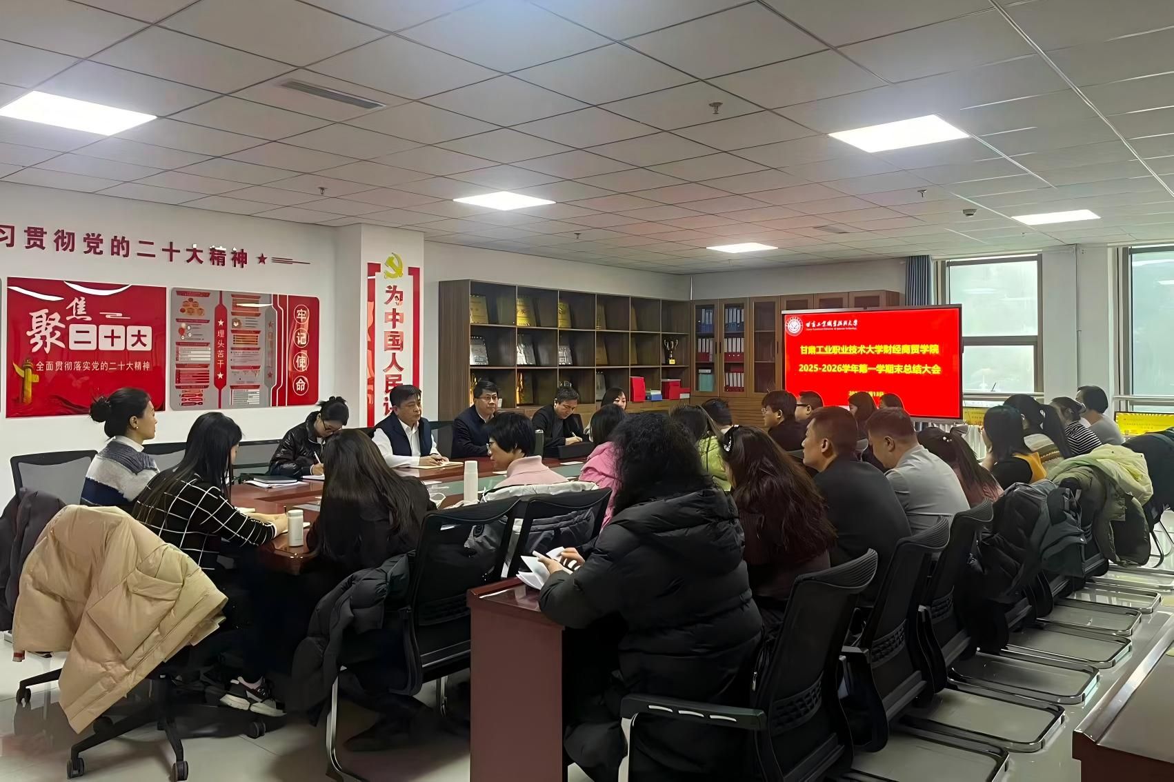 会议总结了本学期各项工作进展,并围绕下一阶段重点任务作出部署:一是完成本学期教学收尾与材料归档工作;二是对接财经商贸行业发展需求,优化人才培养方案,深化课程改革;三是利用寒假开展“促就业暖心行动”,通过访企拓岗、精准帮扶等方式助力毕业生高质量就业;四是将文明素养培育融入教育教学全过程,以文明建设推动学院持续发展。