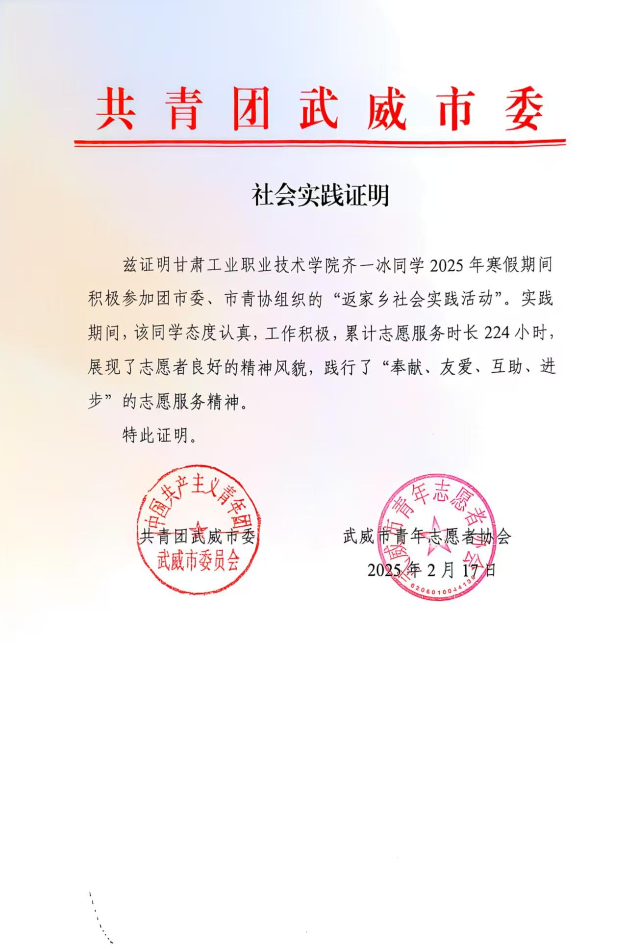在这个寒冷的假期,来自智能制造学院机器人2431班的齐一冰同学,用自己的实际行动在故乡武威绘就了一幅温暖的画卷。他积极响应武威市团委、武威市青协组织开展的“青年志愿行 温暖回家路”暖冬行动志愿服务活动,成为众多返乡大学生助力家乡建设中的一道亮丽风景。