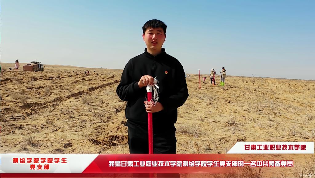 在临时党支部座谈会上他这样说,“作为土生土长的民勤人,小时候,黄沙漫天是常态,从石述柱到马俊河再到仲麟的治沙精神传承,让我埋下了‘绿进沙退’的种子”。大学期间,他多次组织参与志愿活动,并通过短视频记录家乡治沙故事,吸引更多人关注生态保护。今年春天,得知“请到民勤种棵树”公益行动启动后,他第一时间报名,以中共预备党员的身份投身临时党支部,成为青年志愿者中的骨干力量。