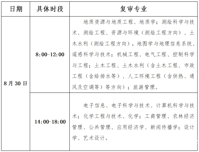 为确保复审工作有序进行,现按专业分为上午和下午两个时段复审,具体安排如下: