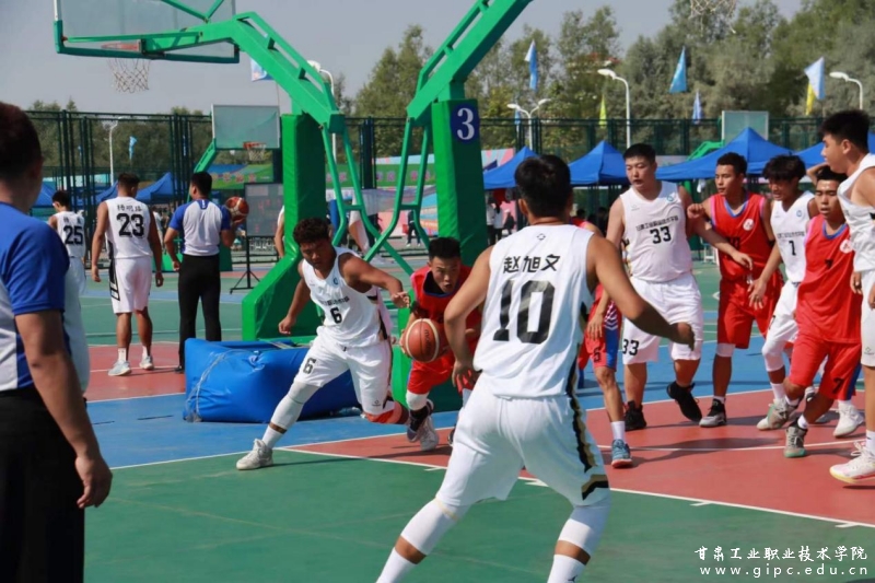 在男篮丙组五六名争夺战中,我校代表队对战甘肃建筑职业技术学院。男篮队员有效运用突围、协作战术完美配合,始终占据主动地位,以65:55的比分结束整场比赛,获得丙组第五名。