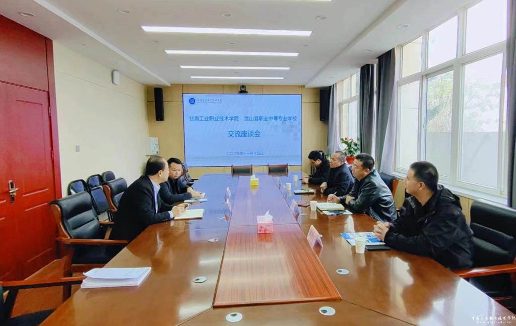 11月15日下午,武山县职业中等专业学校书记马海军、校长王志强等一行4人来我校交流探讨中高职贯通联合办学事宜。副院长周晓明出席,招生就业处负责人等参加座谈会。