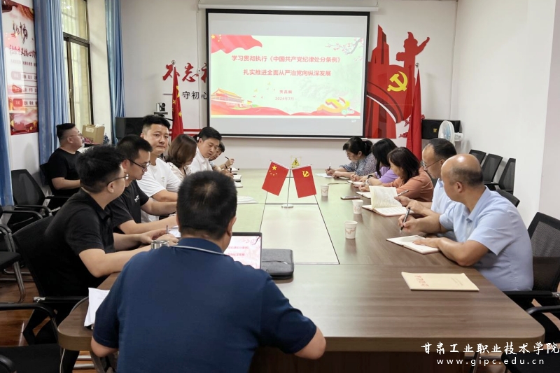 正值全党上下深入开展党纪学习教育之际,7月4日,智能制造学院党总支组织开展了2024年第三季度领导干部讲党课活动,纪委书记、监察专员贾昌麟作题为《学习贯彻执行<中国共产党纪律处分条例>,扎实推进全面从严治党向纵深发展》的专题党课,智能制造学院党总支全体教师党员参加。