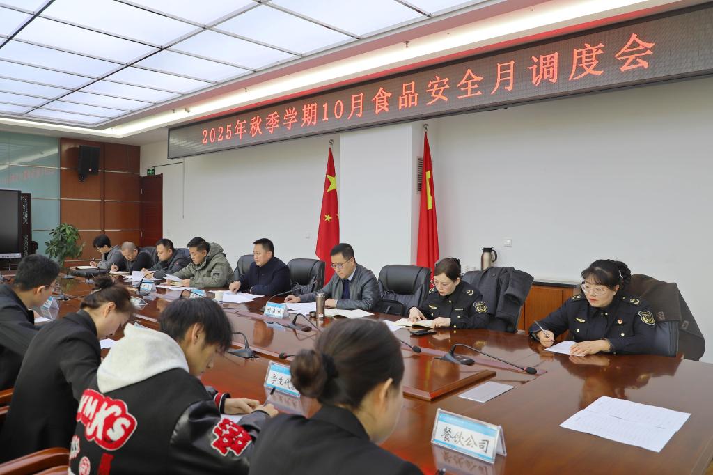 为持续强化校园食品安全管理,切实保障师生饮食安全与身体健康,10月22日,我校在图书馆四楼会议室组织召开了2025年秋季学期10月食品安全月调度会议。学校党委副书记、校长张利军出席会议并讲话,花牛镇市场监督管理所副所长易蓉蓉应邀到会指导。学校后勤管理处、校饮食服务中心、各餐饮承包公司和大宗食材供应商部门负责人以及校学生会生活权益部学生代表共同参加了会议。会议由学校党委常委、副校长胡森林主持。
