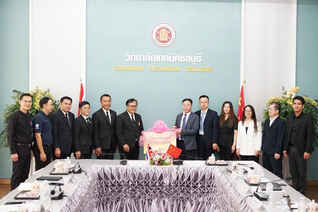 出访期间的重要行程之一,是我校与泰国春武里技术学院共同举行合作签约暨“中泰伏羲智造学院”“海外技能人才培养基地”揭牌仪式。春武里技术学院校长皮拉蓬•颂达博士对代表团的到访表示热烈欢迎。他指出,泰中教育合作历史悠久,此次与甘肃工业职业技术大学共建伏羲智造学院,是双方践行共建共享理念的重要举措,期待将其打造成为中泰职业教育合作的典范。