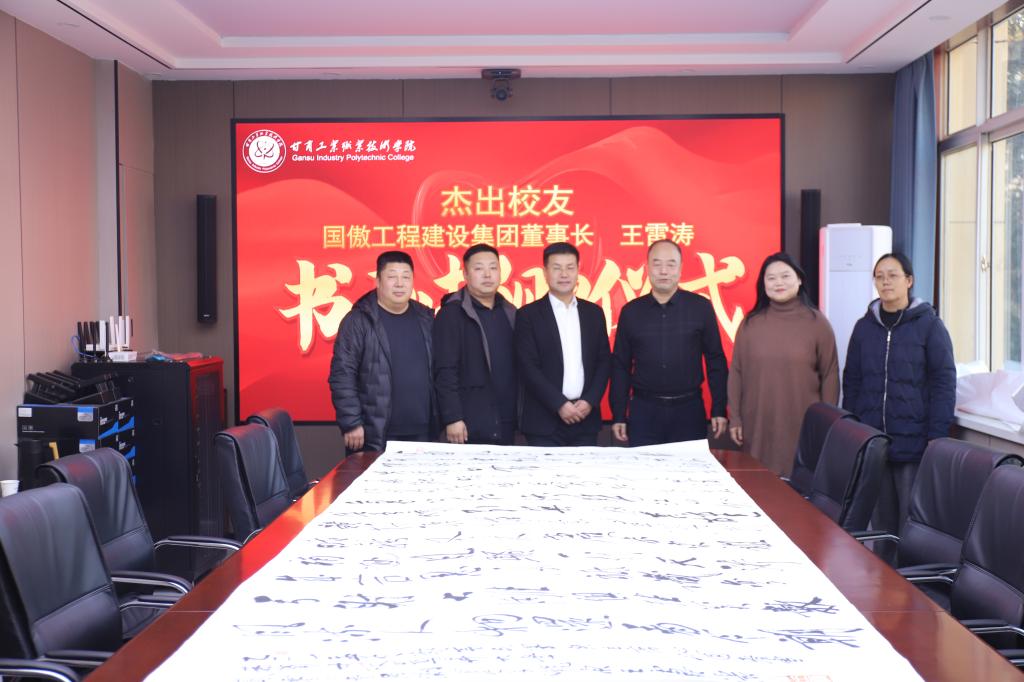 12月15日,我校测绘工程专业2003级校友、国傲工程建设集团董事长、甘肃省图书馆书画院院士王雷涛返回母校,捐赠个人书法作品,表达对母校的深情厚谊与美好祝福。副校长周晓明出席并主持仪式,党委宣传部、学生工作处、测绘学院相关负责人及教师代表参加活动。