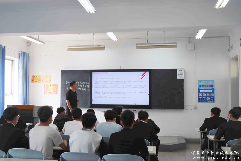 授课围绕教材第十二章第一节“坚持总体国家安全观”展开,听课过程中,安建平认真记录了教师的授课内容、教学方法和教学效果,细心观察同学们的精神面貌和学习状态。