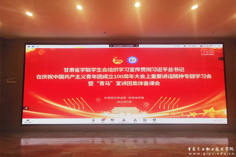 5月21日上午,甘肃省学联学生会组织学习宣传贯彻习近平总书记在庆祝中国共产主义青年团成立100周年大会上的重要讲话精神专题学习会暨“青马”宣讲团集体备课会。我校校院两级团干部代表、“青马”宣讲团成员通过视频会议形式线上参会。