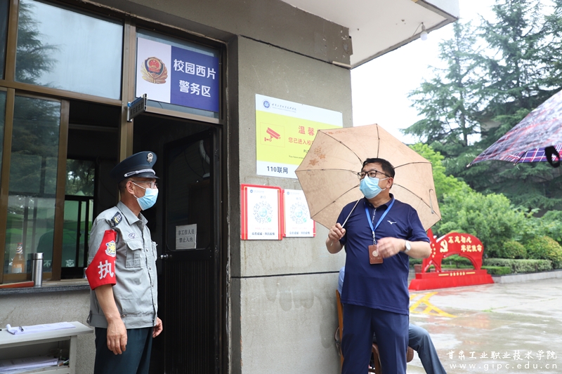 杨声一行首先来到学校西门和东门,检查了人员出入管控情况和西校门排水问题,要求保卫处暑假期间要按照学校疫情防控相关要求,继续严格执行校门管控制度,仔细做好进出人员登记工作,守牢校园疫情防控第一道防线。