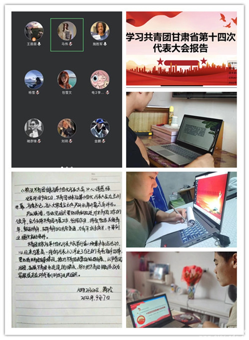 共青团甘肃省第十四次代表大会,是在深入学习贯彻习近平总书记在庆祝中国共产主义青年团成立100周年大会上的重要讲话精神,豪情满怀迎接党的二十大胜利召开的重要时刻,在全省上下贯彻落实省第十四次党代会精神,全面建设社会主义现代化幸福美好新甘肃的关键时期召开的一次青春盛会。我校团委第一时间以线上团课的形式,组织各级团干部、广大团员青年进行认真学习和热烈讨论。让我们一起听听他们的心声!