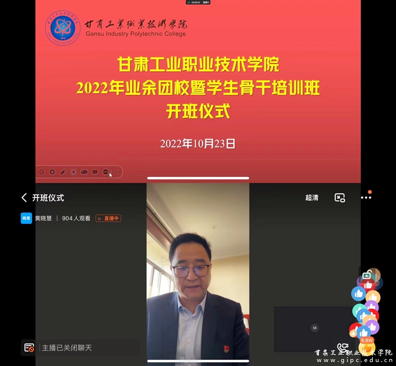 为进一步加强我校基层团学建设,提高学生干部思想理论水平和政治素质,引导青年学生深刻学习领会党的二十大精神,坚定跟党走的决心和信心,10月23日上午,我校2022年业余团校暨学生干部培训会开班仪式通过线上形式顺利举行。学校党委委员、副院长胡森林出席仪式并讲话,校院两级团干教师和全体学员共计900余人参加开班仪式。开班仪式由校团委书记黄晓慧主持。