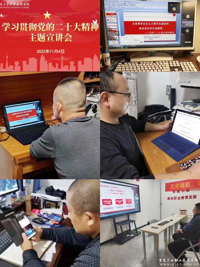 杨声就深入学习宣传贯彻党的二十大精神提出四点要求。一是领导干部要带头学,做到先学一步、深学一层,以身作则、以上率下,做笃学深悟的示范者和引领者;党委理论学习中心组要把学习党的二十大精神作为重要内容,制定学习计划,列出专题进行研讨;各党总支、直属党支部要根据实际制定计划,明确步骤,细化措施,加强督导,确保学习取得实效;要注重党建带团建,引领广大青年认真学、仔细学、用心学,团结带领广大团员青年在建设社会主义现代化强国的进程中作出积极贡献、展现青春担当。二是组织人事部要组织校园师生宣讲团,多形式、分层次、全覆盖组织开展宣讲活动,以喜闻乐见、贴近师生的鲜活事例讲解过去五年中国共产党团结带领中国人民所做的具有开创性的工作和新时代十年伟大变革的重要意义;马克思主义学院要在认真学习、深刻领会的基础上,切实落实二十大精神进教材、进课堂、进头脑。三是宣传部、团委、各党总支、直属党支部要精心组织新闻宣传,利用各种宣传形式,引导广大师生员工坚定信心、同心同德、埋头苦干、奋勇前行,要把网络宣传作为二十大精神的主要阵地,积极展示学校发展新面貌、新作为,传播正能量、树立新风貌。四是结合实际促转化。各部门、二级学院要紧密联系工作实际,联系师生思想实际,坚持学以致用,在深化现代职业教育改革创新发展的关键时刻,切实把大会精神贯彻落实到实际工作中去,踔厉奋发、勇毅前行,团结奋斗、开拓进取,在新起点上不断开创甘肃工业职业技术学院建设发展新局面。