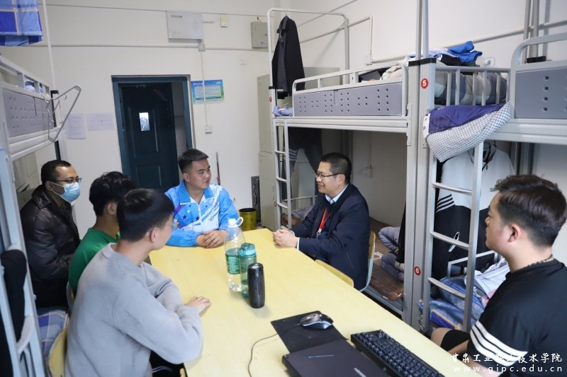 走访中,慰问组一行询问了同学们在学校期间的学习生活情况,了解了同学们线上学习开展状况,并要求同学们疫情期间要理解并遵守各项防疫措施,配合学校做好防疫工作,加强自我防护、加强锻炼、提高身体素质。王利军跟同学们交谈的过程中,鼓励大家在做好自我防护的同时保持学业精进,做好期末期间的复习,以积极饱满的状态迎接考试。