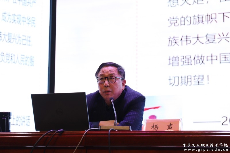 杨声指出,青年是国家的未来和民族的希望,青年强则国家强。广大青年学生要把个人理想与党和国家的需要、民族的前途命运紧密联系在一起,立大志、明大德、成大才、担大任;要坚持从现在做起,从自己做起,勤学、修德、明辨、笃实,勇做走在时代前列的奋进者、开拓者、奉献者;要惜时如金,也要突出主干,要把艰苦环境作为磨炼自己的机遇。杨声强调,职业教育的目的就是为了培养高素质技术技能型人才,广大青年学生要以行求知、以知促行,真正做到知行合一,不要满足于现状、不要坐享其成,要在挫折中经风雨、见世面、壮筋骨、长才干。怀抱梦想又脚踏实地,敢想敢为又善作善成,立志做有理想、敢担当、能吃苦、肯奋斗的新时代好青年,让青春在全面建设社会主义现代化国家的火热实践中绽放绚丽之花。