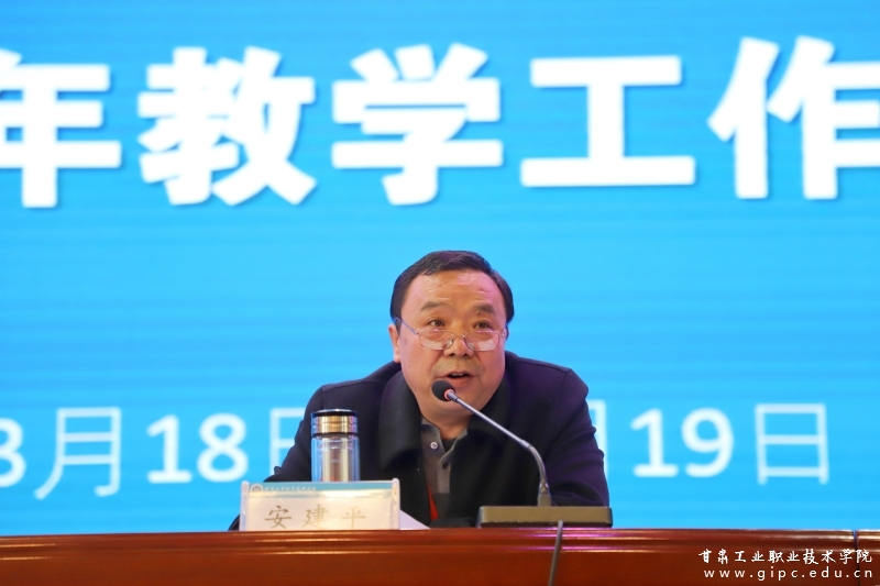 3月18日上午,副院长王利军向大会做了《甘肃工业职业技术学院教学工作报告(2021-2022学年)》,报告从教学重大项目建设、制度建设、教学改革专项工作、教学常规工作等方面全面回顾了学校2021—2022学年教学工作;从三抓三促、双高计划、技能甘肃、提质培优、1+X制度、三教改革、制度修订、课程思政、赛教融合等主要方面安排部署了“十四五”中后期教学改革及发展规划重点工作,创新提出“12341”教学工作总体思路。