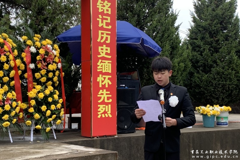 校学生会轮值主席滕文钰作为学生代表发言,表示要时刻牢记先烈的英雄事迹,秉承先烈的革命精神,化绵绵哀思为不竭动力,以更加昂扬的斗志展现青年的朝气蓬勃。