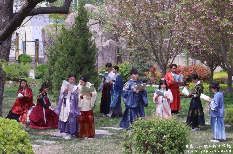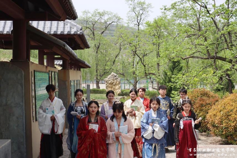 “罗衣何飘飘,轻裾随风还”,学生们身着汉服,漫步在春日的校园中,观赏校园春光,与园中景色遥相呼应,伴着悠扬的诵读声与同学们的欢声笑语,在春日的校园中展现着古典与青春的交融。