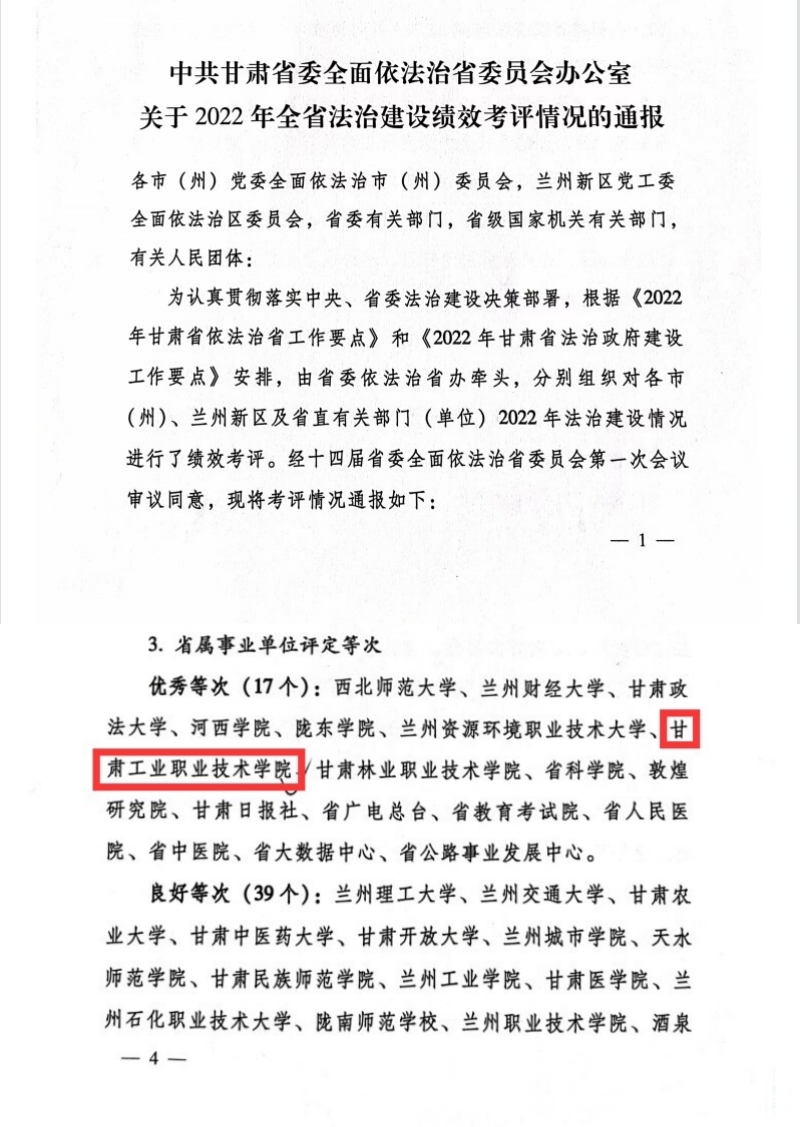 近日,省委全面依法治省委员会办公室通报了2022年全省法治建设绩效考评情况结果,我校在此次考评工作中荣获优秀等次。