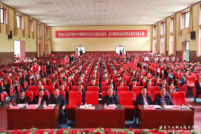 党委书记杨声致辞,代表学校党政向全校广大青年教师、团学干部和青年学生们致以节日的问候,向受到表彰的先进集体和个人表示热烈的祝贺。他指出,近年来学校各级团学组织在党委的领导下,围绕中心、服务大局、积极探索、勇于实践,开展了大量富有成效的工作。广大团员青年在“五四”精神的感召和激励下,恪守“高举团旗跟党走”的政治信念,秉承“崇德精技、乐业修身”的校训,积极投身于学校改革发展的生动实践,创造了无愧于时代的辉煌业绩,同时涌现出许多投身祖国建设的优秀技能人才,树立了“工院骄子”的光辉形象。