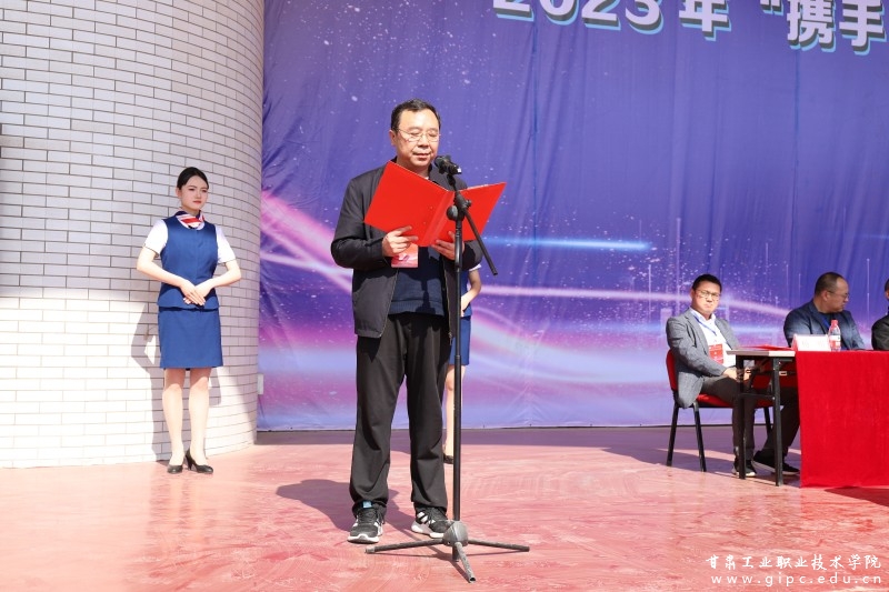 来自江苏长青农化股份有限公司的杨明代表企业发言。他指出,甘肃工业职业技术学院是甘肃省毕业生就业先进单位,建校四十多年来,一代代工院人扎根陇原、拼搏奋斗、无私奉献,孕育传承了独具特色的核工业军工精神,秉承“崇德精技、乐业修身”的校训,培养的毕业生素质高、技能强,受到用人企业一致好评。并代表参加招聘的企业郑重承诺:认真落实有关法律法规,规范用工行为,切实保障学生们的合法权益,维护和谐劳动关系。