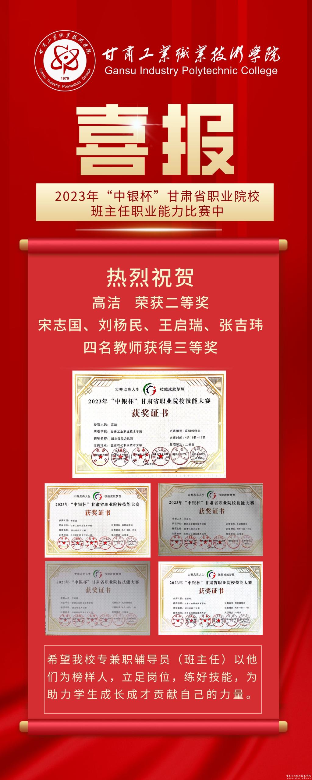为持续推进“三抓三促”行动,深化辅导员队伍建设,提升辅导员队伍建设质量,我校积极组织专兼职辅导员参加2023年中银杯甘肃省职业院校班主任职业能力比赛,参赛5名辅导员全部获奖。