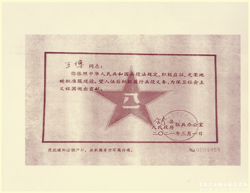 王博同学于2020年9月由会宁县职业中学考入我校地质学院钻探专业,2021年3月入伍。2021年11月6日,王博同学在执行工作任务中因公牺牲,被认定为因公牺牲军人。