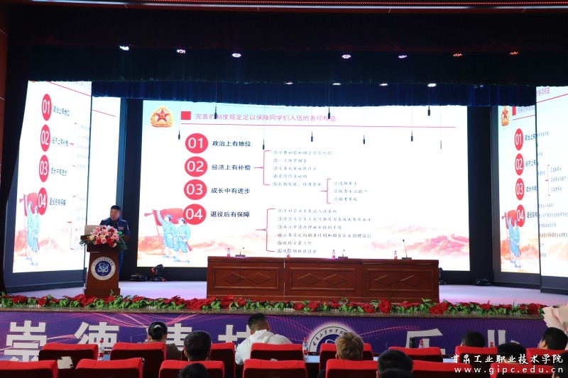 李根来围绕“青春风华正茂,参军无上光荣”从学生应征入伍权益保障和贴心温暖的一站式服务等三个方面对大学生入伍优惠政策进行了详细生动的解读。他指出,2023年是新颁布的《征兵工作条例》实施的第一年,鼓励大学毕业生响应国家号召,明确自己的责任担当,将自身发展与祖国需要相结合,积极行动起来,踊跃报名参军入伍,树立携笔从戎、建功军营、报效祖国的人生理想。