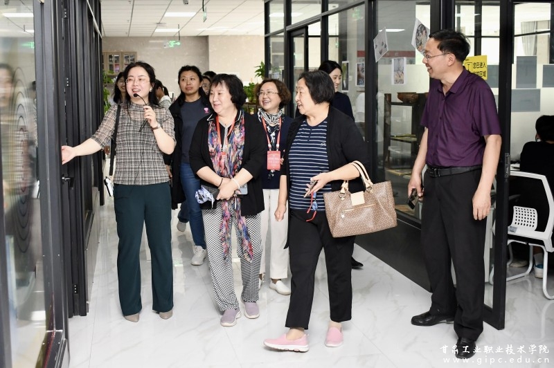 专家学者们参观了非遗刺绣、掐丝、木雕工作室,就工作室非遗传承与创作进行了交流,她们纷纷感叹:“小地方出大物件,高职院校虽没有本科院校的机会多,但学生做出的作品每样都精彩纷呈,取得国家级大奖很不容易”。