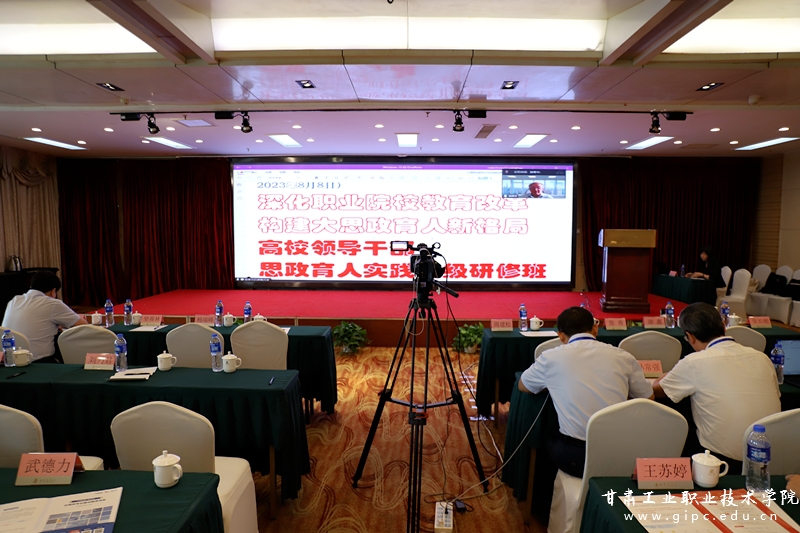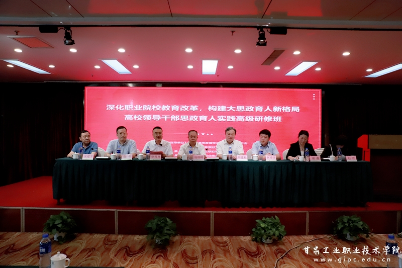 8月8日上午,由中国高等教育学会职业技术教育分会、浙江省高职院校党建研究会指导,北京中教互联教育科技有限公司主办,甘肃工业职业技术学院承办的高校领导干部思政育人实践高级研修班在山水苑酒店8楼报告厅顺利开班。中国高等教育学会职业技术教育分会理事长周建松,浙江商业职业技术学院党委书记何瑶伟,浙江同济科技职业学院党委书记张勇,浙江育英职业技术学院党委书记谢鑫,天水市委教育工委书记、市教育局党组书记杨瑞峰,甘肃工业职业技术学院党委书记坚葆林,党委副书记、院长安建平等出席。来自全国42所高职院校的50余名干部参加此次培训。开班仪式由中国教育在线副总编赵欣主持。
